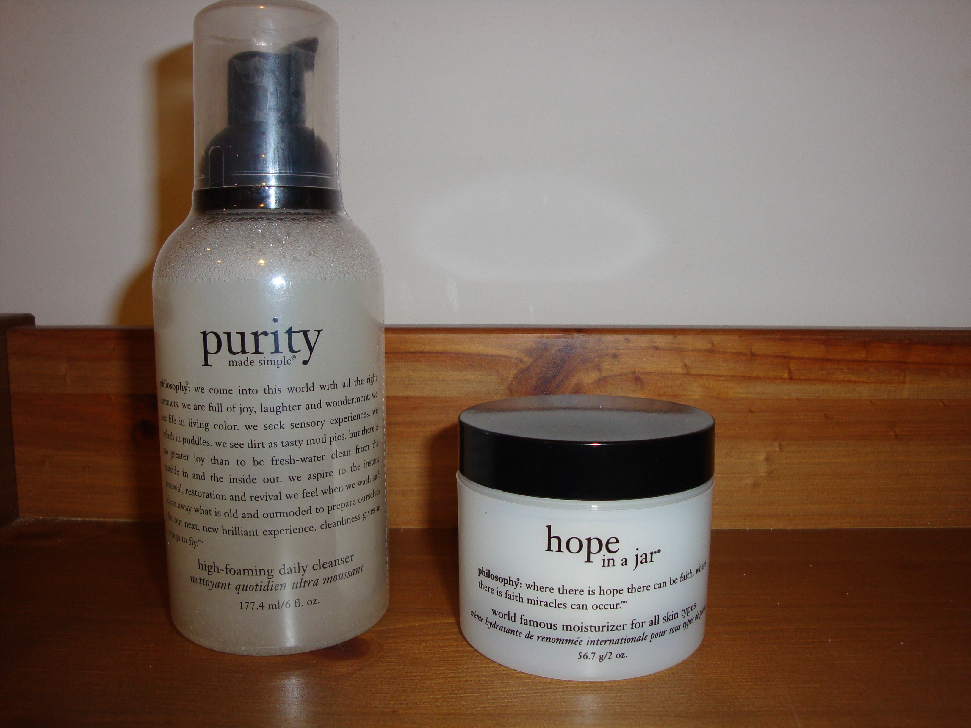 I was at Sephora few weeks ago since I needed a new moisturizer. I came across these products by Philosophy and since their products are some of Sephora’s best-sellers, I wanted to give them a try. After a brief discussion with one of their beauty consultants or whatever you call them, I purchased Hope in a Jar (moisturizer) and Purity Made Simple (foaming cleanser.)