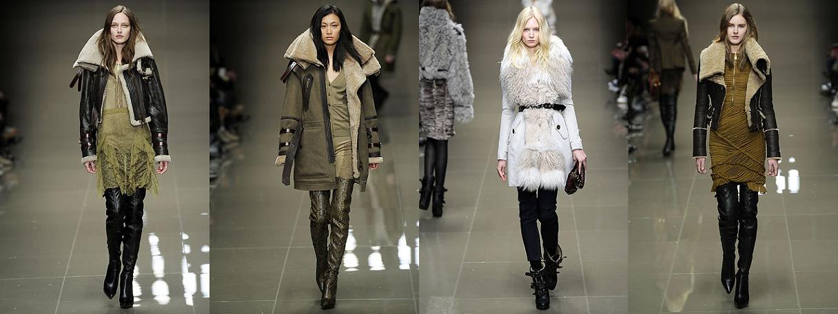 Burberry Prorsum RTW Fall 2010 is certainly one of my favorite collections for this year. The outerwear is to die for. The collection had a certain “cool girl” vibe to it – the girl who looks interesting and sexy without looking like she tried too hard. I can picture myself wearing one of the gorgeous shearling aviator jackets with skinny jeans and rock-star boots. 🙂 Besides, the shearling would be absolutely perfect for the freezing Toronto weather. I love what Christopher Bailey is doing at Burberry – every season the clothes get better and better.
