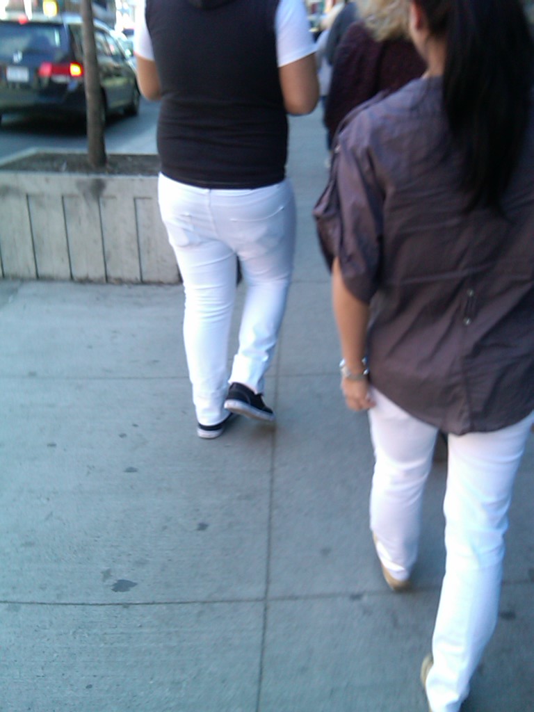 Dear Sir, please don’t make me have to look at this while I’m walking down one of Toronto’s fashionable streets. If you’re a guy who is out of shape and is not planning to get in shape, please for the love of god don’t buy skinny white jeans and wear them in public. It’s a wrong fit, the pockets are waaaaaaaaaaay down on the back and why are you shoving crap in them pockets. Sigh…