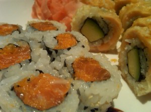 The Spicy Salmon Roll was pretty standard but quite good. The Go Train Roll was a little uninspiring since they had used a heavy batter once again and the salmon was cooked instead of raw. The maki was explained as having “crunch” on the menu so we were expecting a light tempura batter instead of a soft doughy one.