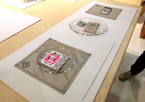 Since I feel so strong about this topic when I came across this little package I was extremely excited and thought I should share it with others. The design of “My Phone Is Off For You” is by Ingrid Zweifel of The Way We See The World. I think it’s just the smartest thing ever. With in the package there are a few tools that you can use to show your companion that they have your attention all to themselves.