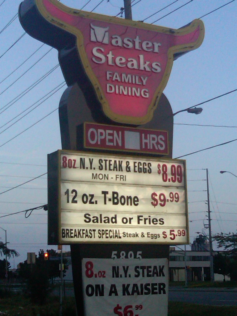 Now, to call this a “restaurant review” may be a bit of a stretch. As opposed to most other reviews, there will be no evaluations of ambience, service or decor. Master Steaks is the most random and obscure place (in fact, Solmaz “discovered” this place when she made a late-night visit there with an ex) but it is definitely worth a visit if you enjoy good food and adventures to in-middle-of-nowhere dives.