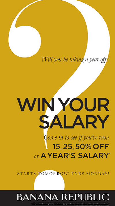 I can’t wait to run to my favorite BR store and see if I’m the lucky winner of the year’s salary. Sigh, the things i would do with that. hahah