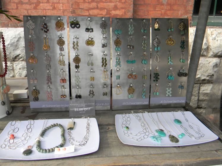 I met Jill this past weekend while going in and out of the market area in the Distillery area in Toronto. I first notice her stall because it looked absolutely beautiful with fresh flowers, beautiful table covers and modern displays, I could tell she had good taste even before I looked at her beautiful jewellery pieces.