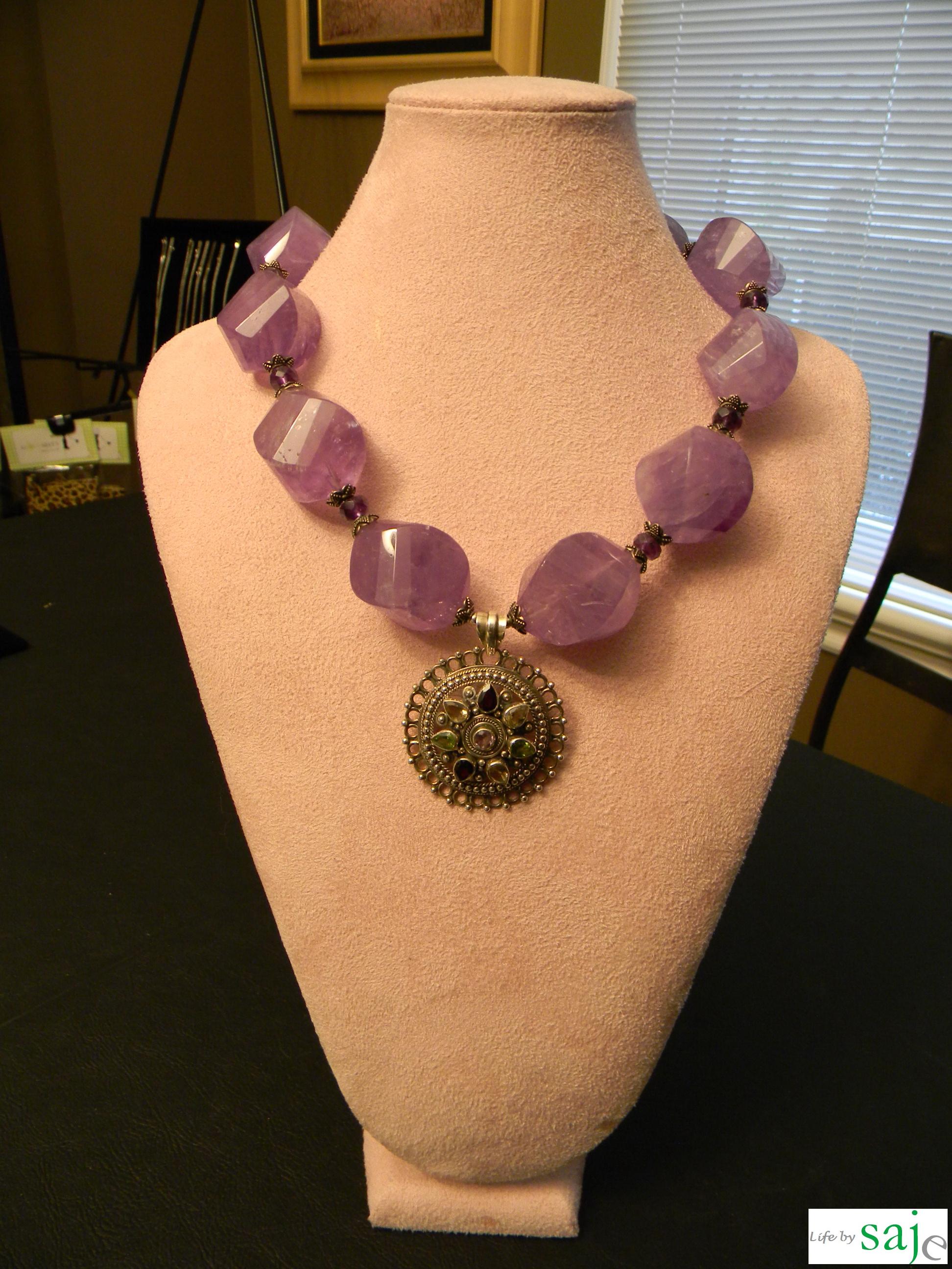 I got a chance to look through Sandy’s collection of necklaces and bracelets recently and I fell in love with their bold colors and how they stand out on their own like true statement pieces. All of the pieces made by Sandy are sterling silver and semi precious stones, price ranging anywhere from $130 to $270.