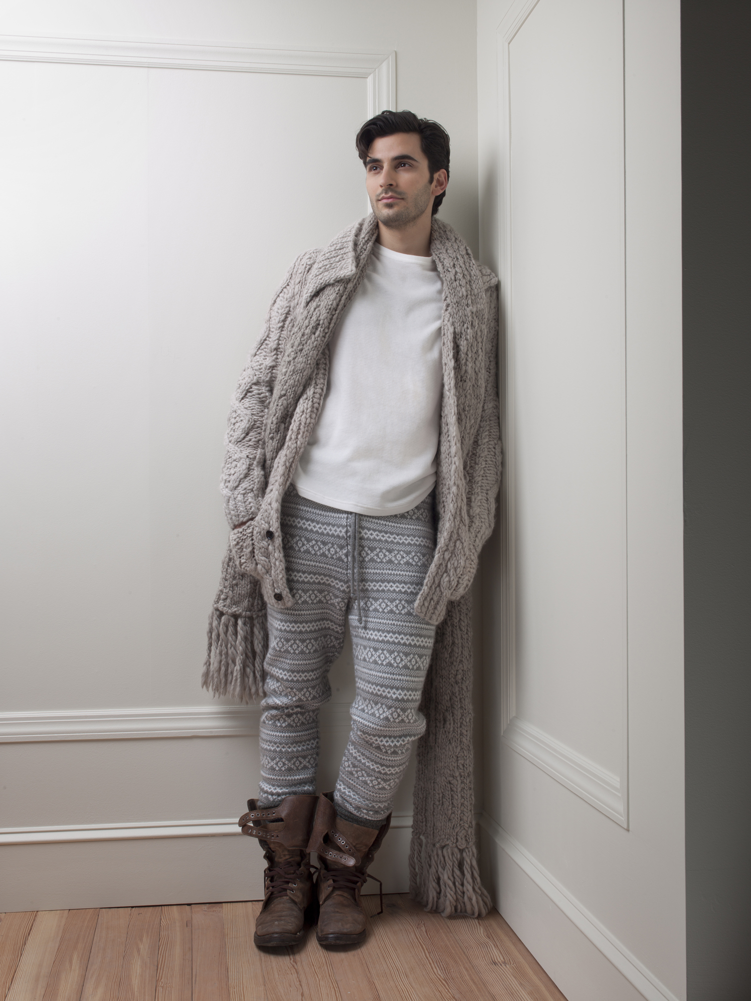 I’m a bit confused about the Cromwell pants, but I guess if I was off somewhere in the Swiss alps skiing I wouldn’t mind seeing my guy in something like this; anywhere else please switch with a pair of jeans! haha I love the chunky cardigan though. think it’s a must for any guy to have one.