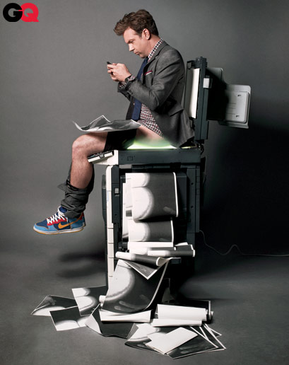 Looking through GQ.com late at night and saw an article about pairing plaid shirts (LOVE them!) and dark tie (it’s a must) with your suits to make them pop and a more fresh look to them. The model for these pictures is Jason Sudeikis of SNL, he looks super cute in his get up for the photo shoot; I wonder who was the stylist for this shoot.