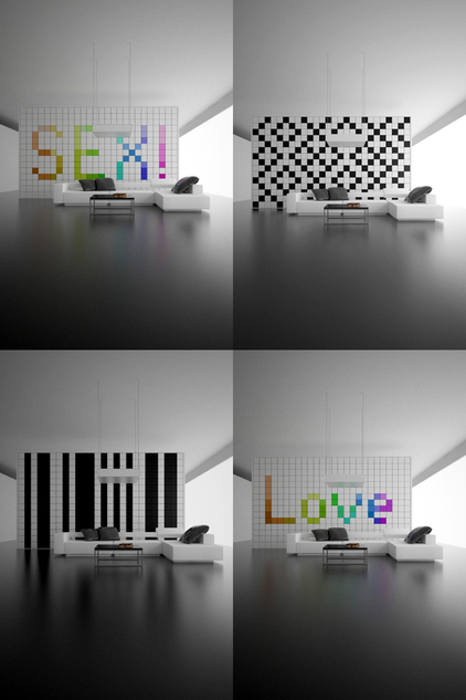 I found an interior designer, Amriko, who came up with this genius wall design. The idea of being able to change the colors of my walls according to my mood makes me HAPPY! haha