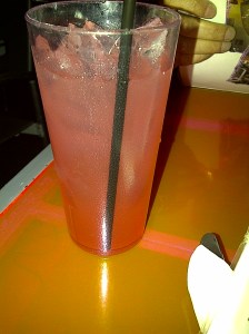 For our starter we ordered a MASSIVE plate of nachos (I can’t remember the price, sorry!) filled with hot peppers, tortilla chips, beans and awesome guacamole. This thing was huge but between the two of us we showed it who was the boss at that dinner. Even our waiter was surprised that we finished that plate! To quench our thirst we ordered some Big Pink Lemonade ($3) till our main dishes were ready.