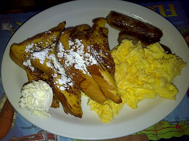 An order of 3 Pair ($9.95) – 2 eggs, 2 bacon or sausage or Canadian bacon, 2 pancakes or French toasts and coffee for Mr. BBM.