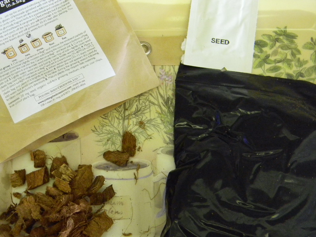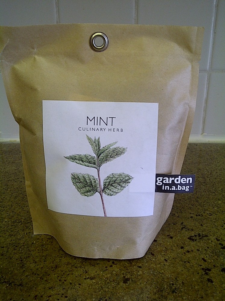 The motivation behind the new green project was this “Garden-in-a-bag” kit from Potting Shed Creations. Living in a condo doesn’t give me a lot of options or room to experiment with gardening, Garden-in-a-bag is the perfect solution to that problem.
