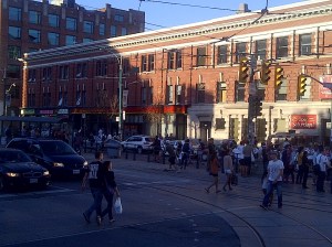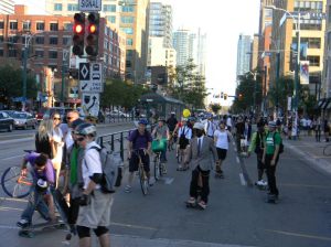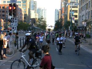 On our way back, we took the TTC rocket, and we ended up getting stuck on it for 10 mins on Spadina and Queen, thanks to few hundred kids riding on their skateboards. It was fun to watch how the cops on bikes keep the kids at least on one side of the road.