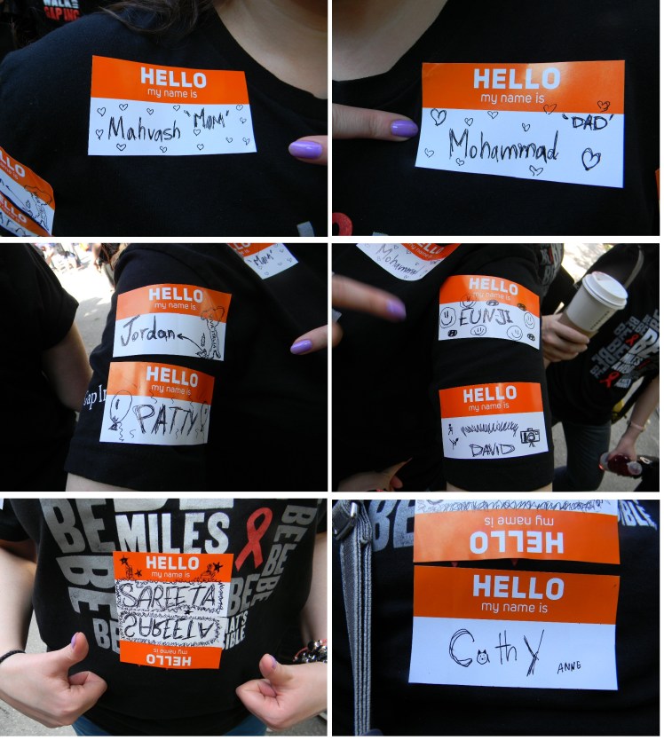 As promised in return I made stickers with everyone’s names on it and wore them proudly during the walk. It started a lot of conversations with other walkers and of course it made me feel like I have the support of lots of people with me during the walk. So thank you and here are the pictures. 🙂