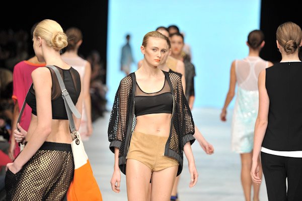 Smart sports wear was the theme for Joeffer Caoc’s SS2012 collection. Anything from mesh sweaters to sequin dresses, perfect for a girl on the go or an easy stylish everyday look.