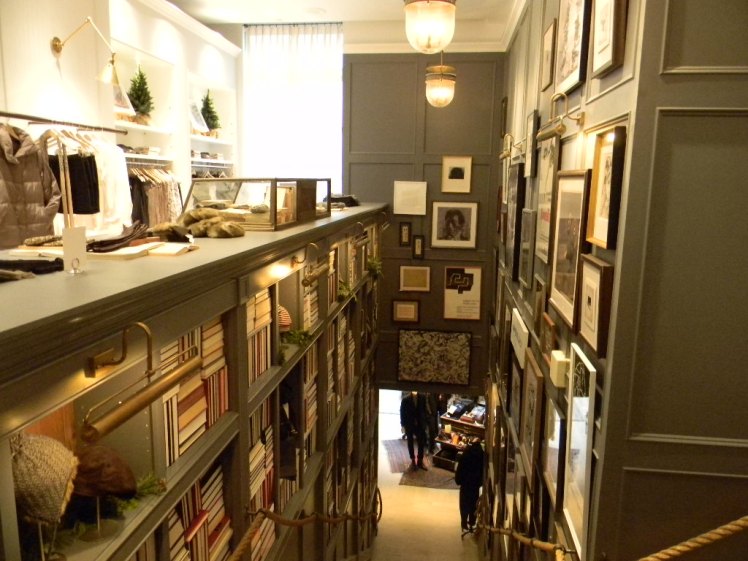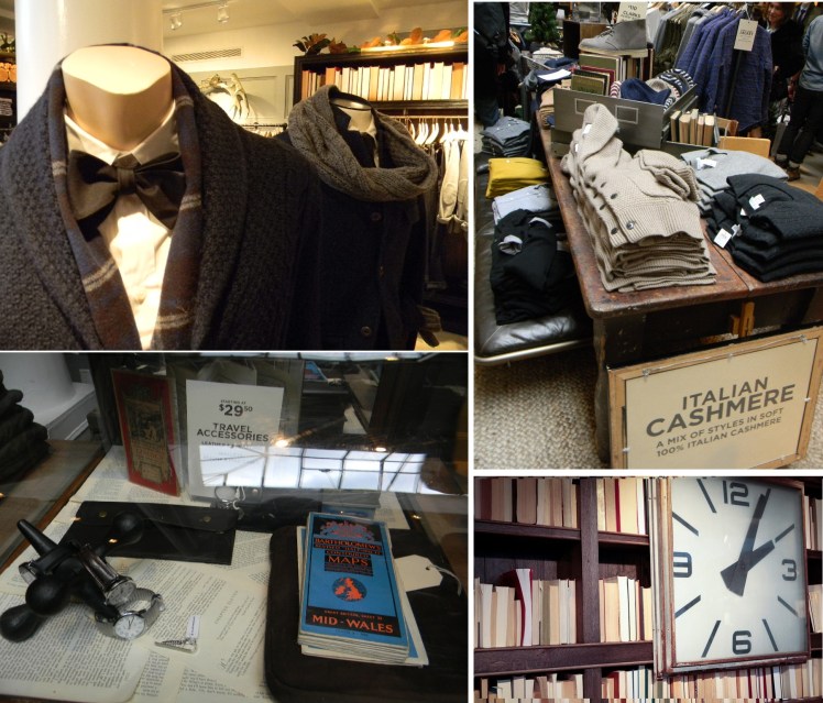 Walking down the stairs to the newly re-opened Club Monaco men’s shop on Bloor st. feels almost forbidden for a girl. The hall way filled with real books, old posters and charming little treasures that looked like they were collected over the years from traveling all over the world. Wooden floors, ethnic rugs, smell of leather and whiskey makes me feel like I just stepped into a real gentlemen’s club; but this club is not just for men.