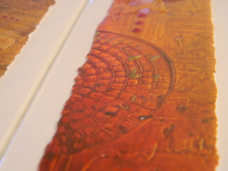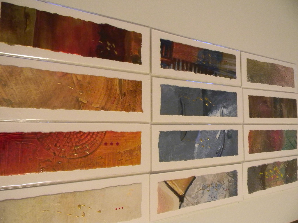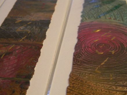 I bought a collection of bookmarks from abstract painter Stephen Gillberry at the One of a Kind Show and I’m planning BIG things with them. They are colorful, textured and I love them!
