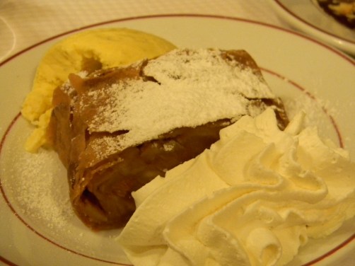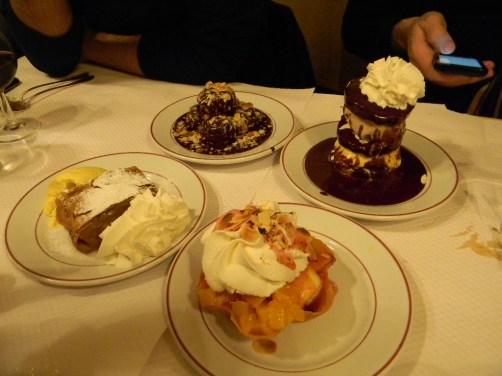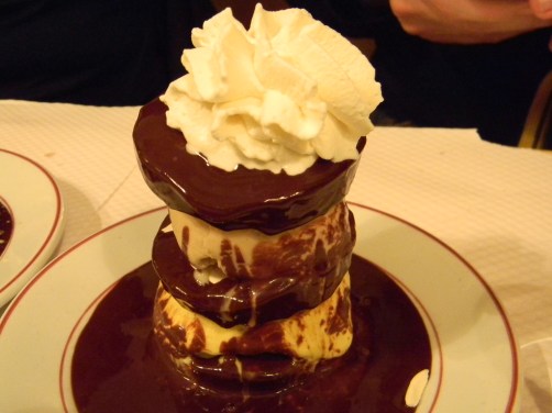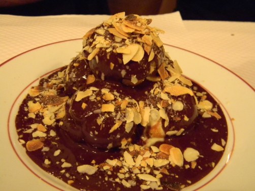 The tastiest of all the dessert was the plate of Les profiterolles au chocolat, delicate and filled with yummy goodness…..