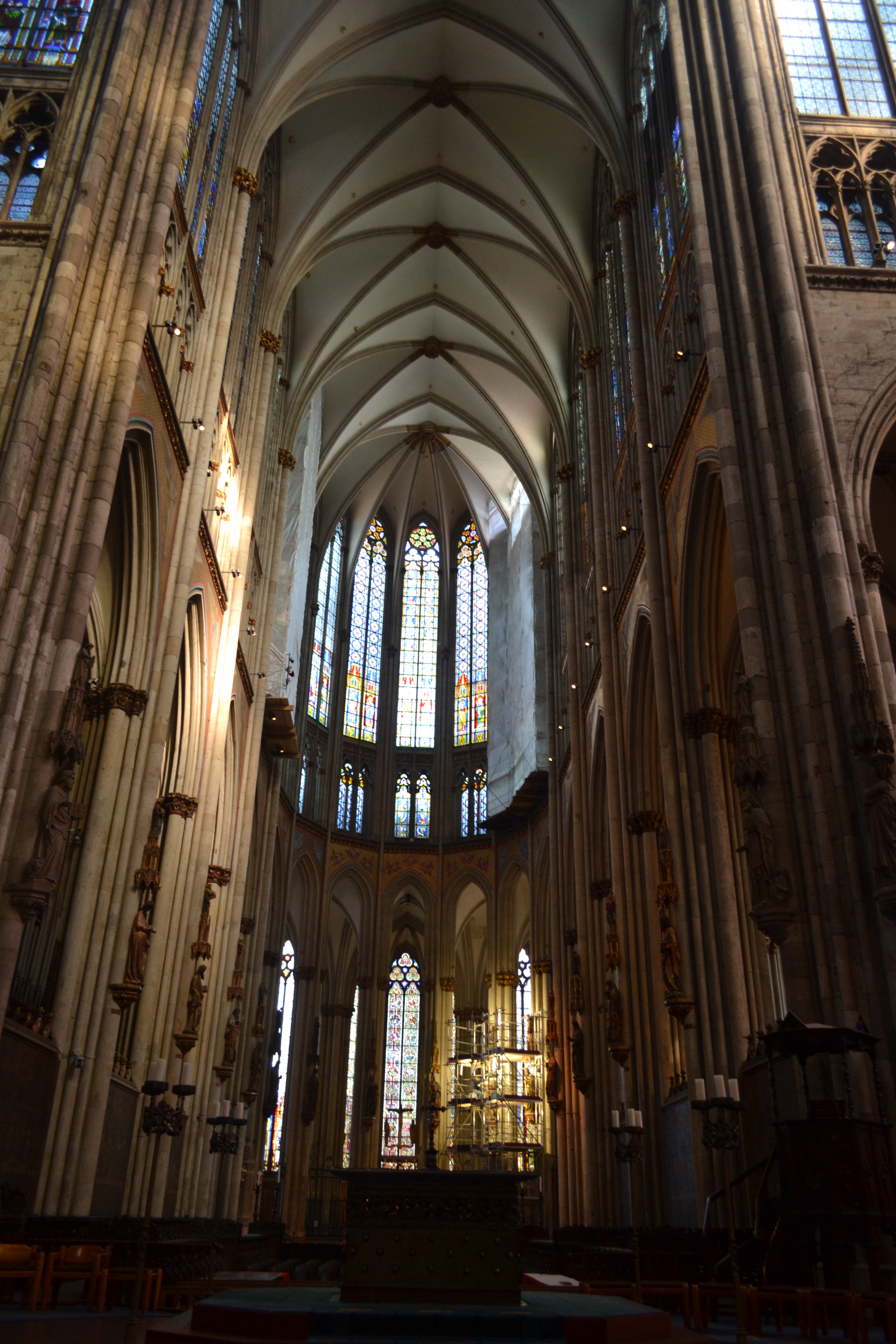 Cologne Cathedral is a must see for anyone visiting Cologne, it’s see humbling to look at a monster of building and learn about its’ past and how it took almost 700 yrs to finish. This Gothic style building watches over all the other buildings since 1248 and I can’t even imagine the things it has witnessed and survived during all these years. We decided to take a look inside and eventually get ready to climb the 533 steps all the way up to the viewing platform (322 ft) above the ground to take a better view of the city.